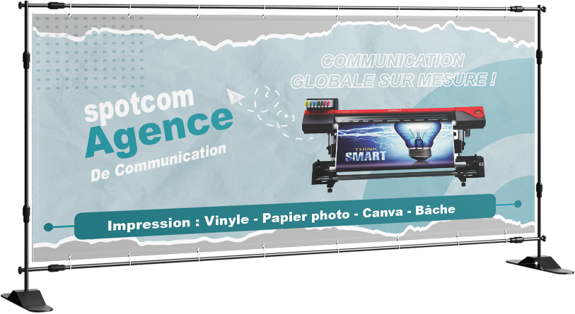 SpotCom, imprimerie située à Marrakech, est spécialisée dans l’impression numérique et la communication visuelle au Maroc. Nous mettons à votre disposition une équipe d’experts composée de conseillers, de designers et de techniciens, chacun spécialisé dans l’art de l’impression professionnelle. Notre mission est de concrétiser vos idées en réalisations percutantes, grâce à notre savoir-faire et à des équipements de pointe.